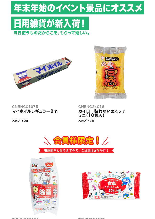 商品詳細 【PICKUP!】アレンジ無限大!ヘアク... 【PICKUP!】ささやかな飾りにオスス... 【PICKUP!】節分にぴったりのお面を... 【PICKUP!】小物景品にピッタリの光... 【SALE!】プリキュア、戦隊関連商品 ... 【INFORMATION!】卒業・卒園お... 【新商品!】キラキララメの入ったシール帳... 【新商品!】アンパンマンシリーズの「ビニ... 【新商品!】アナグラムから新作バルーンが... 【新商品!】年末年始のイベント景品にオス... 1 2 3 … 160 Next »