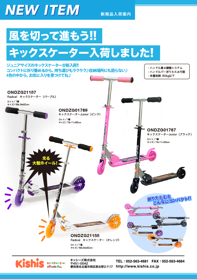 【新商品!】風を切って進もう!!キックスターター入荷しました!