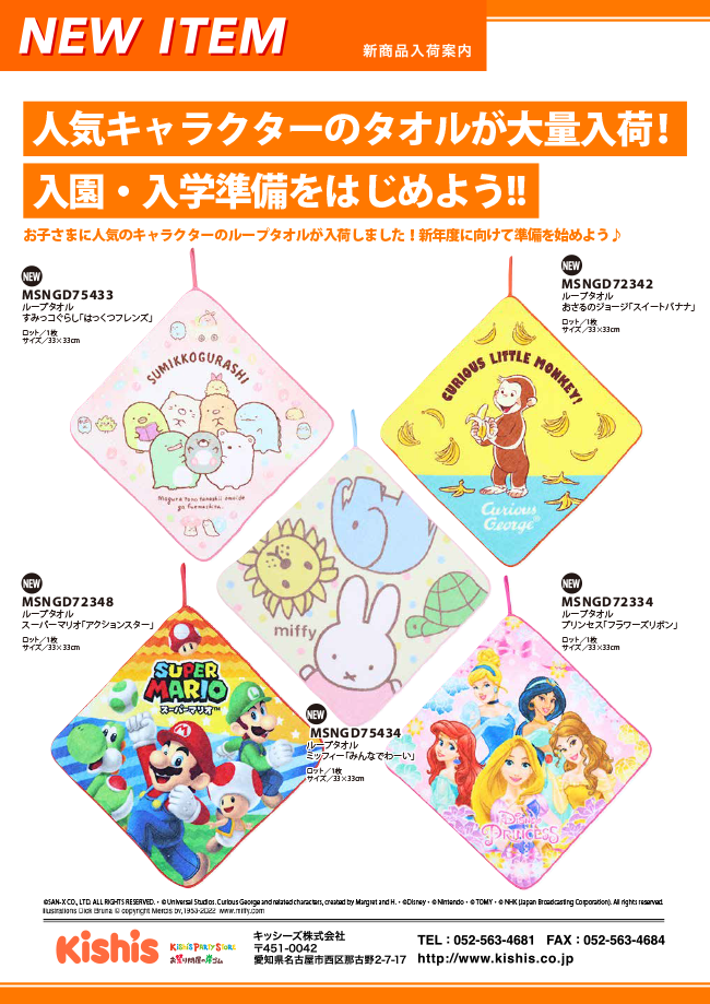 【新商品!】人気キャラクターのタオルが大量入荷!入園・入学準備をはじめよう!!