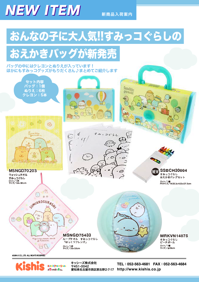【新商品!】おんなの子に大人気!!すみっコぐらしのおえかきバッグが新発売