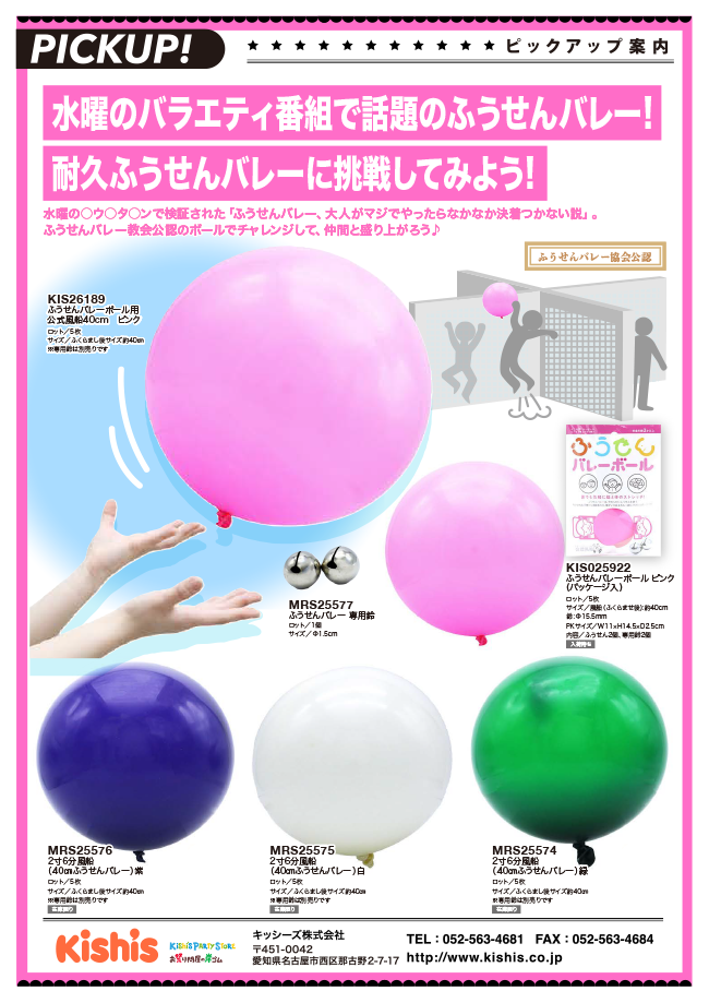 【PICKUP!】水曜のバラエティ番組で話題のふうせんバレー!耐久ふうせんバレーに挑戦してみよう! 2022年5月16日 投稿者: kishisnews カテゴリー: 商品情報Bookmark the permalink
