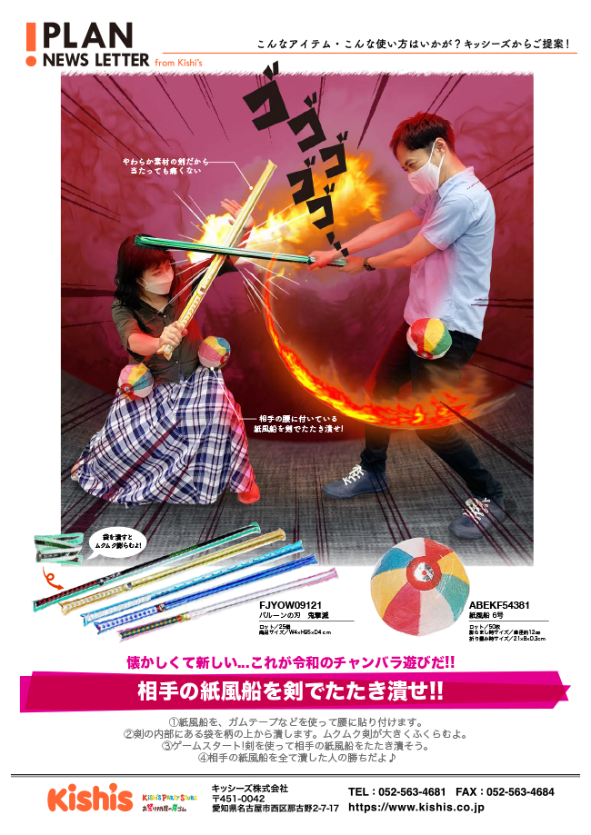 【新提案!】懐かしくて新しい…これが令和のチャンバラ遊びだ!!相手の紙風船を剣でたたき潰せ!! 2022年7月20日 投稿者: kishisnews カテゴリー: 商品情報Bookmark the permalink