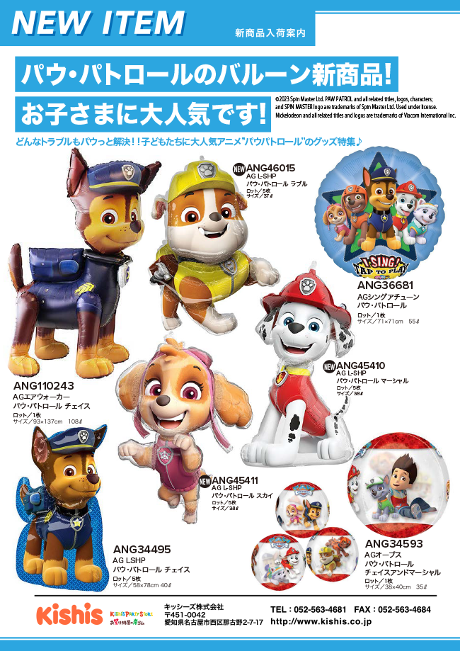 【新商品!】パウ・パトロールのバルーン新商品!お子さまに大人気です!