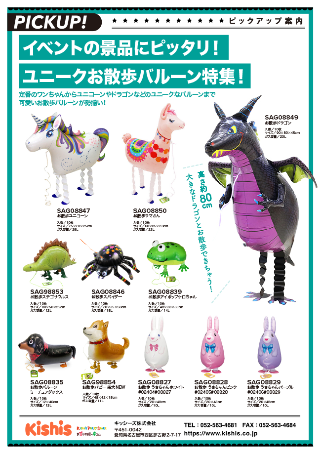 【PICKUP!】イベントの景品にピッタリ!ユニークお散歩バルーン特集!