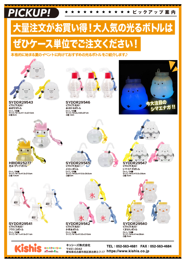 【PICKUP!】大量注文がお買い得!大人気の光るボトルはぜひケース単位でご注文ください! 2024年7月10日 投稿者: kishisnews カテゴリー: 商品情報Bookmark the permalink
