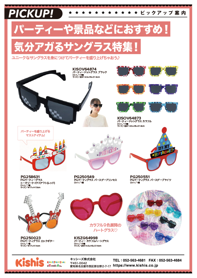 【PICKUP!】パーティーや景品などにおすすめ!気分アガるサングラス特集!