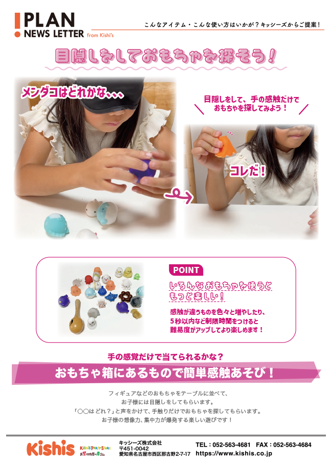 【PLAN】手の感覚だけで当てられるかな?おもちゃ箱にあるもので簡単感触あそび! 2024年9月30日 投稿者: kishisnews カテゴリー: 商品情報Bookmark the permalink