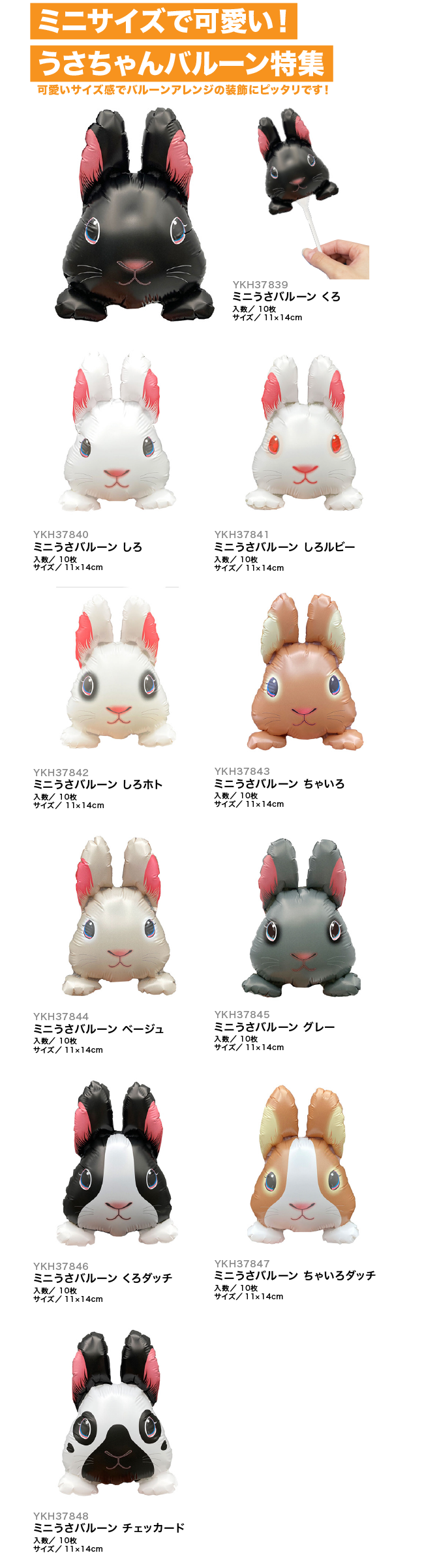 【PICKUP!】ミニサイズで可愛い!うさちゃんバルーン特集!