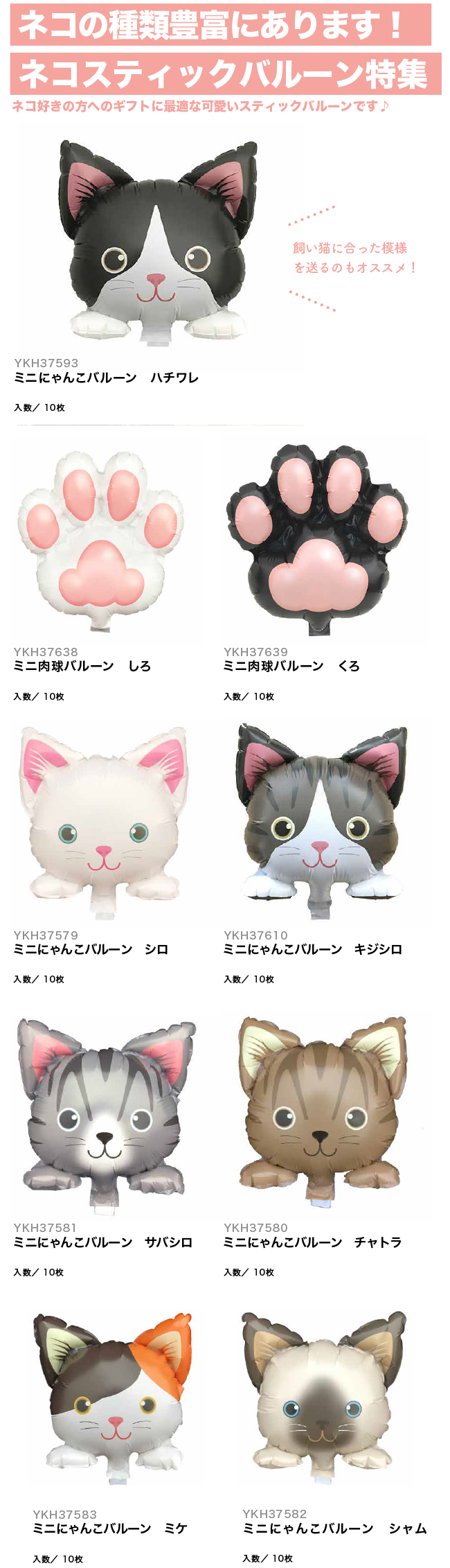 【PICK UP!】ネコの種類豊富にあります!ネコスティックバルーン特集
