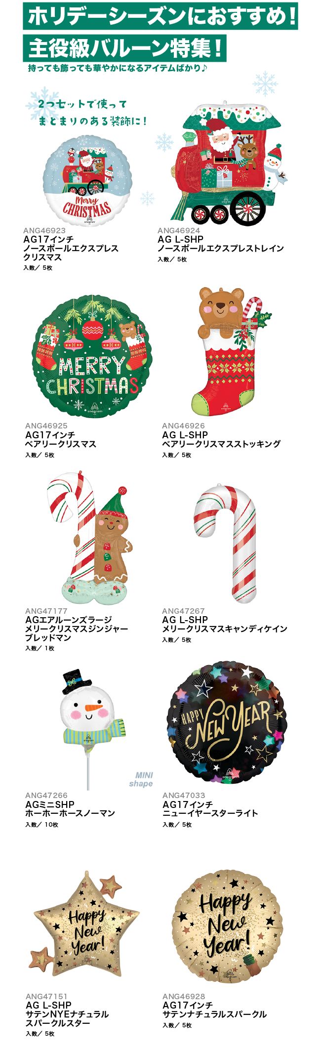 【新商品!】ホリデーシーズンにおすすめ!主役級バルーン特集!