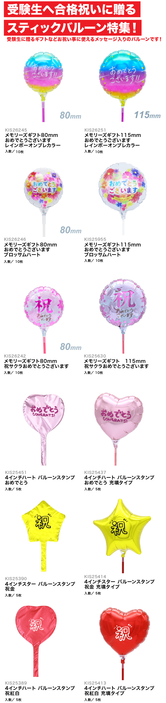 【PICKUP!】受験生へ合格祝いに贈るスティックバルーン特集!