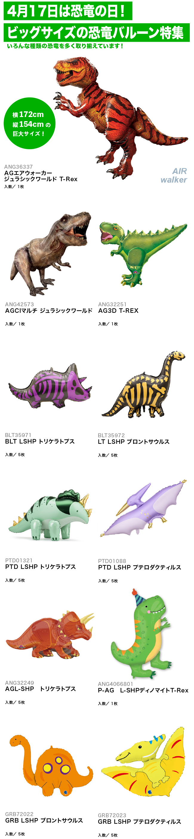 【PICKUP!】4月17日は恐竜の日!ビッグサイズの恐竜バルーン特集