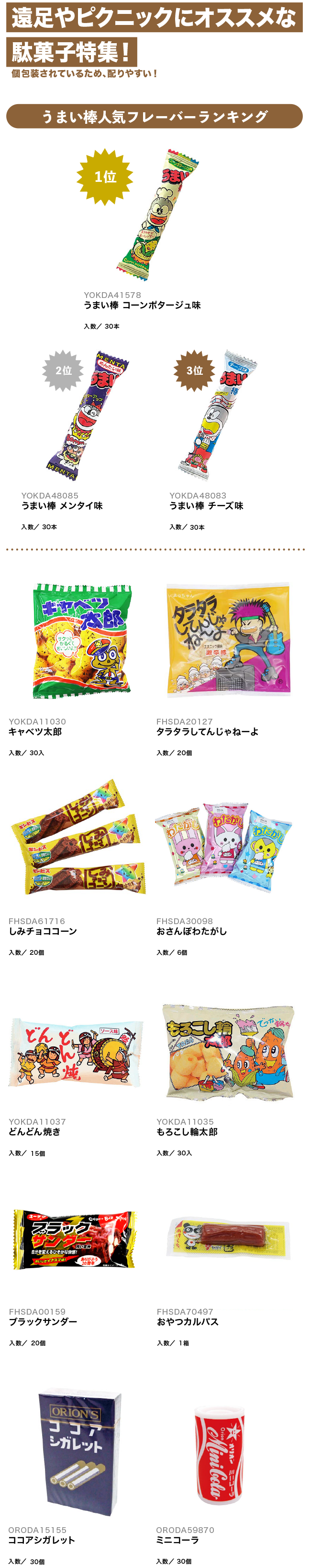 【PICKUP!】遠足やピクニックにオススメな駄菓子特集!