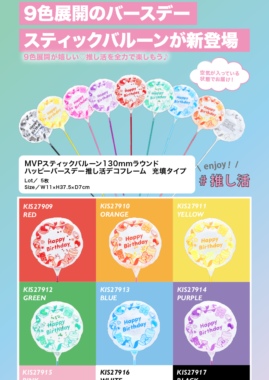 【新商品!】9色展開のバースデースティックバルーンが新登場
