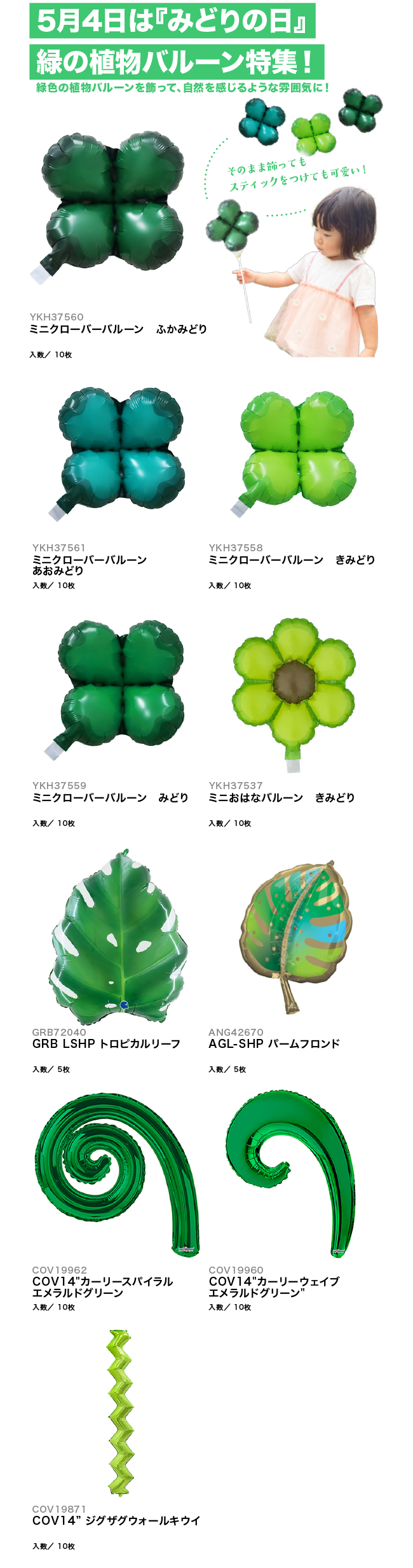 【PICKUP!】5月4日は『みどりの日』緑の植物バルーン特集!