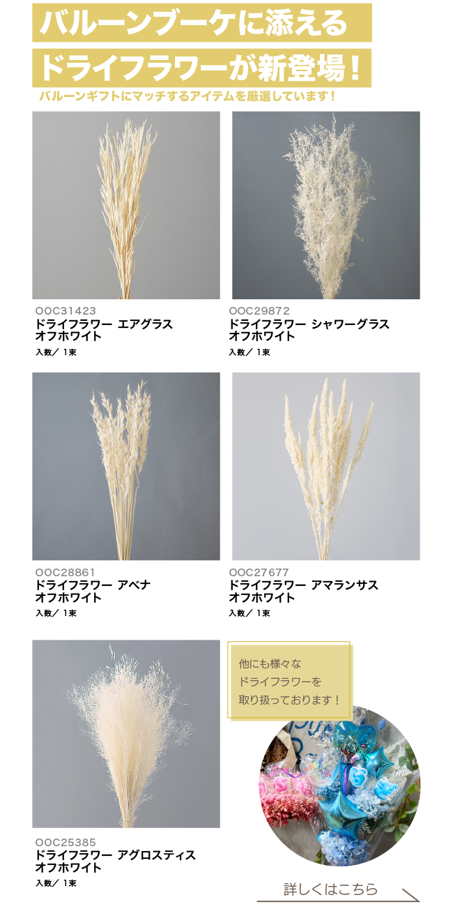 【新商品!】バルーンブーケに添えるドライフラワーが新登場!