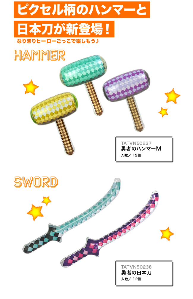【新商品!】ピクセル柄のハンマーと日本刀が新登場!