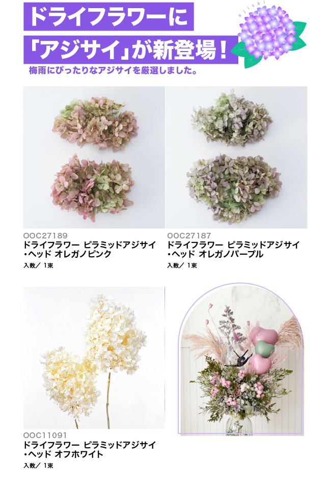 【新商品!】ドライフラワーに「アジサイ」が新登場!