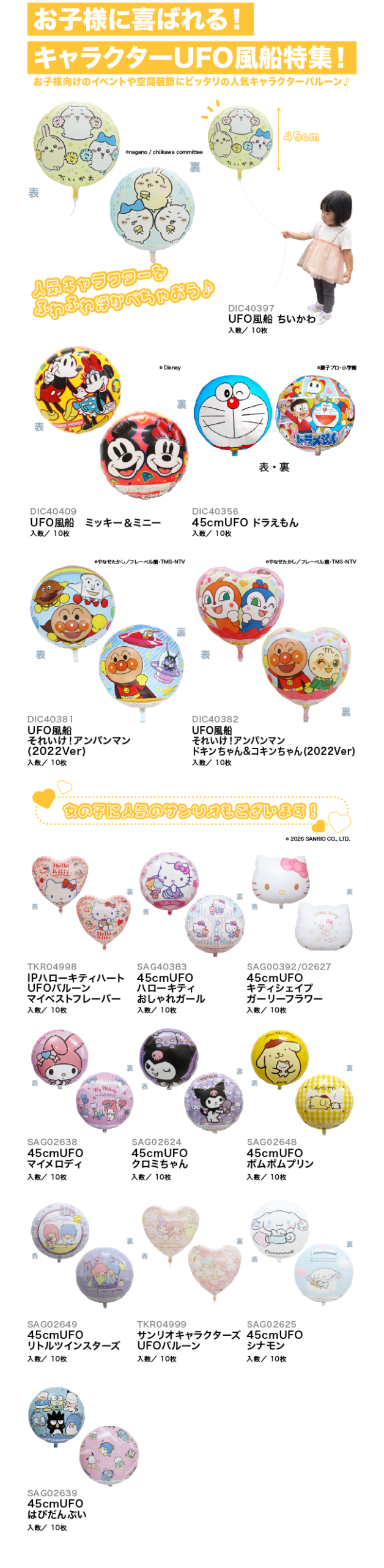 【PICKUP!】お子様に喜ばれる!キャラクターUFO風船特集!