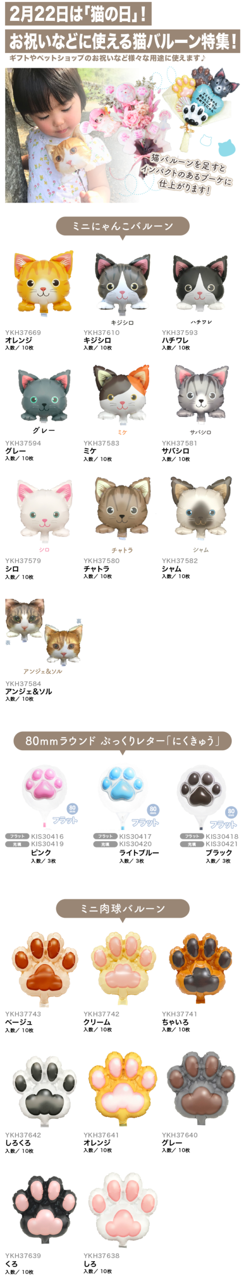 【PICKUP!】2月22日は「猫の日」!お祝いなどに使える猫バルーン特集!