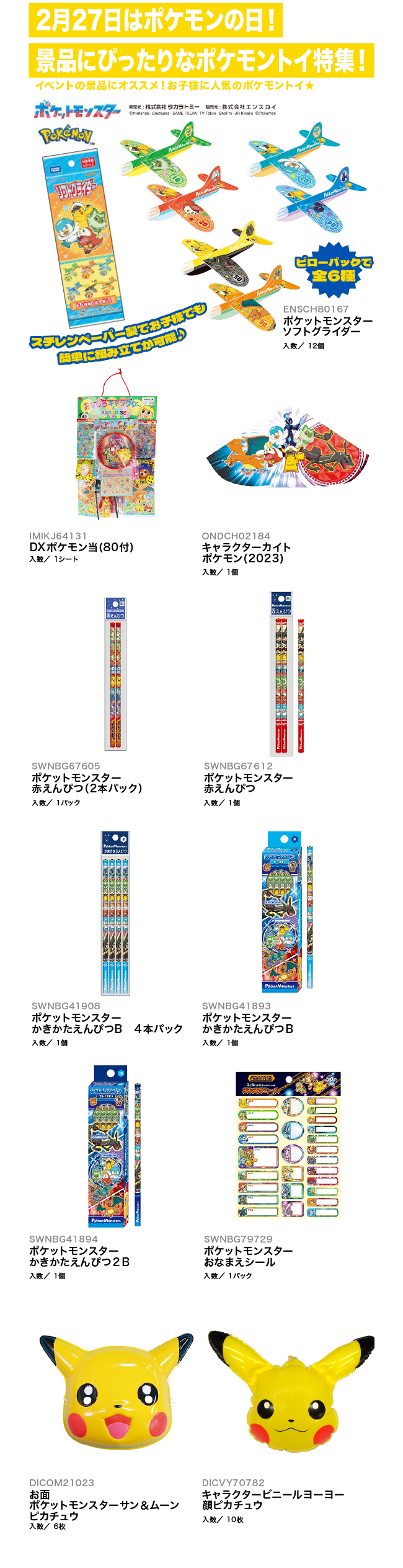【PICKUP!】2月27日はポケモンの日!景品にぴったりなポケモントイ特集!