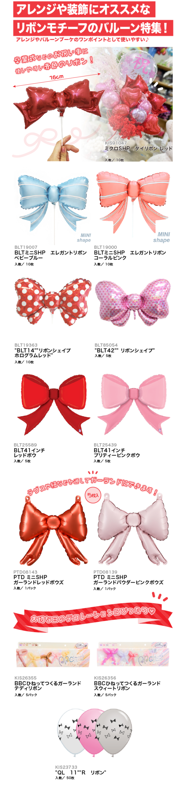 【PICKUP!】アレンジや装飾にオススメなリボンモチーフのバルーン特集!