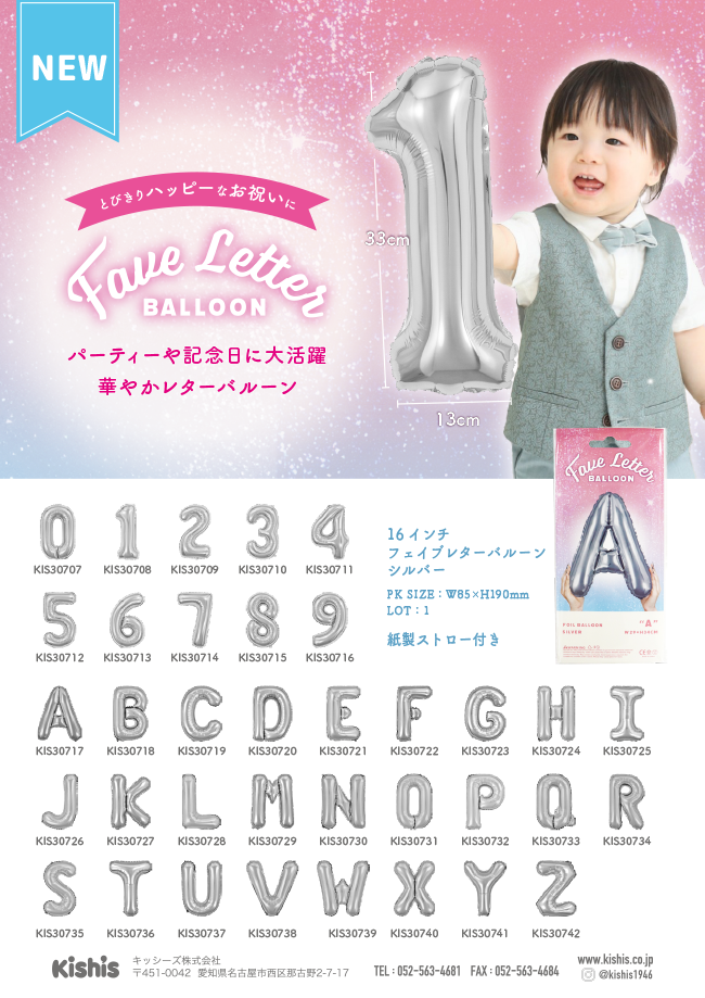 【新商品!】16インチフェイブレターバルーンシルバーが新登場!
