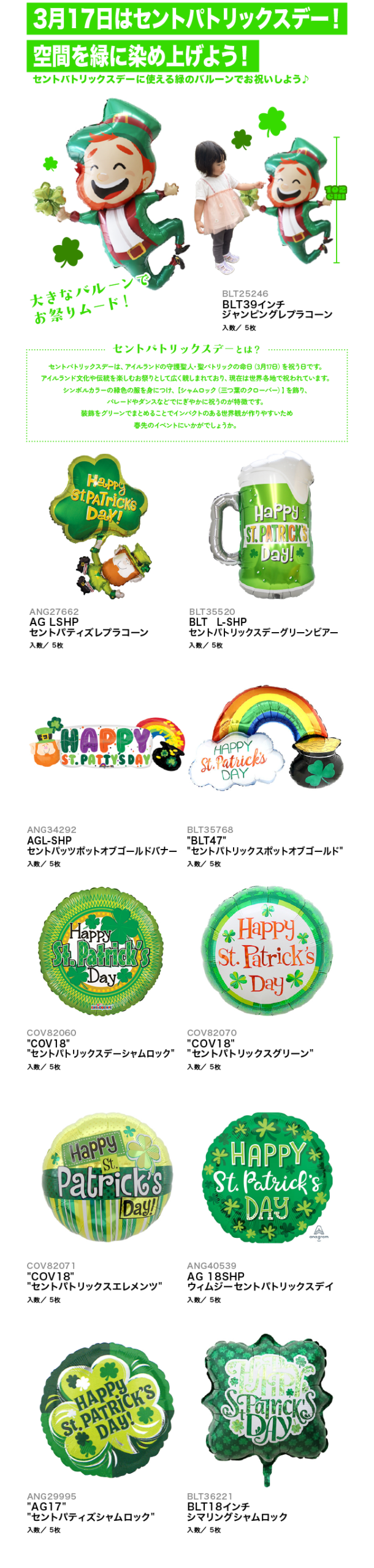 【PICKUP!】3月17日はセントパトリックスデー!空間を緑に染め上げよう!