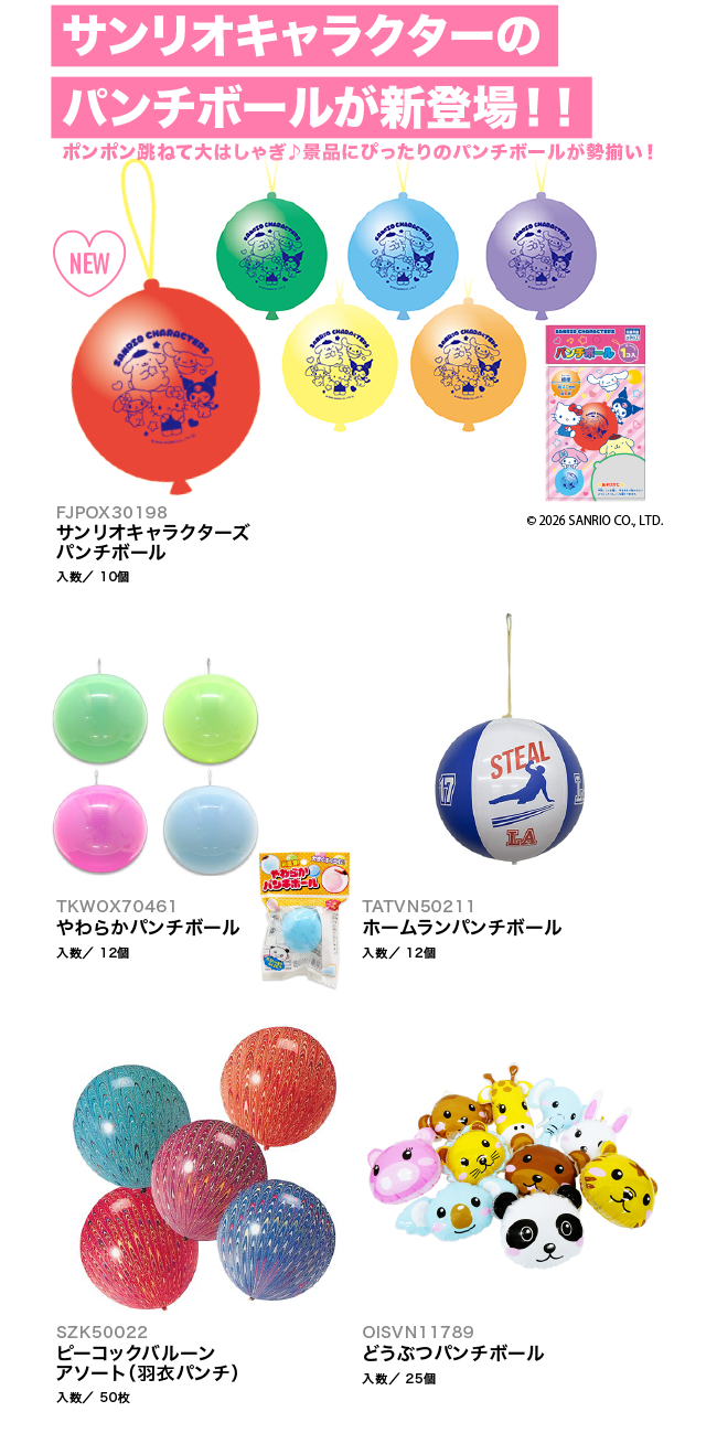 【新商品!】サンリオキャラクターのパンチボールが新登場!!